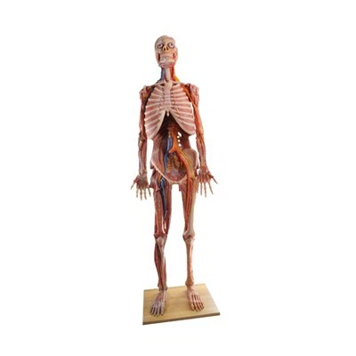 Το μοντέλο από μαλακή σιλικόνη, σε βάθος ανατομής ανθρώπινου σώματος, υψηλής προσομοίωσης, δείχνει τους φλεβικούς κλάδους (επιφανειακή κροταφική φλέβα, υπερκογχική φλέβα, υποκογχική φλέβα, εξωτερική ρινική φλέβα, υποψυχική φλέβα, εσωτερική ιερή φλέβα, οπισθοφθάλμια φλέβα, ινιακή φλέβα, άνω γνάθος φλέβα, φλέβα, έσω σφαγιτιδική φλέβα, υποκλείδια φλέβα, μασχαλιαία φλέβα, πλάγια θωρακική φλέβα, φλέβες επίφυσης, άνω κοίλη φλέβα, οπίσθια μεσοπλεύρια φλέβα, βραχιόνιος φλέβα, ακτινωτή φλέβα, ωλένια φλέβα, παλαμιαία φλέβα, ραχιαία παλαμιαία φλέβα, μετακαρκινική φλέβα, μεσοπλεύρια φλέβα , κάτω κοίλη φλέβα, κοινή λαγόνια φλέβα, έσω λαγόνια φλέβα, μεσαία ιερή φλέβα, μηριαία φλέβα, μεγάλη σαφηνή φλέβα, πλάγια μηριαία φλέβα, επιφανειακή εξωτερική φλέβα, πρόσθια κνημιαία φλέβα, ραχιαίο φλεβικό δίκτυο, ιγνυακή φλέβα, άνω γλουτιαίος γλουτιαίος γλουτιαία φλέβα, οπίσθια κνημιαία φλέβα, πρώτη διατρητική φλέβα, δεύτερη διατρητική φλέβα, κ.λπ.) Αρτηριακοί κλάδοι: (εγκεφαλική αρτηρία, κοινή καρωτίδα, άνω γνάθια αρτηρία, κάτω γνάθος, έσω πτερυγοειδής αρτηρία, κάτω κυψελιδική αρτηρία, νοητική αρτηρία, επιφανειακή κροταφική αρτηρία, ινιακή αρτηρία, έσω αρτηρία, ραχιαία ρινική αρτηρία, σπονδυλική αρτηρία, βραχιονοειδείς αρτηρίες τόξο, θωρακική αορτή, κοιλιακή αορτή, λαγόνια αορτή, έσω λαγόνιο αρτηρία, άνω γλουτιαία αρτηρία, κάτω γλουτιαία αρτηρία, μηριαία αρτηρία, πλάγια μηριαία περιμετρική αρτηρία, εν τω βάθει μηριαία αρτηρία, πρόσθια κνημιαία αρτηρία, πρόσθια πλάγια πλάγια αρτηρία, σφυρή αρτηρία αρτηρία, ραχιαία πεδιοειδής αρτηρία, ραχιαία μεταταρσιακή αρτηρία, υπερωτιαία αρτηρία, πλάγια θωρακική αρτηρία, ιγνυακή αρτηρία, πρώτη διατρητική αρτηρία, δεύτερη διατρητική αρτηρία, πλάγια αρτηρία υπεργονάτου, έσω υπεργονατονική αρτηρία, οπίσθια μεσοοστική αρτηρία, πρόσθια οπίσθια κνημιαία αρτηρία αρτηρία, έσω σφυρός, ραχιαία παλαμιαία αρτηρία, ραχιαία ψηφιακή αρτηρία, μασχαλιαία αρτηρία, θωρακοακρωμιακή αρτηρία, πρόσθια κυκλική αρτηρία, βραχιόνιος αρτηρία, ακτινική παράπλευρη αρτηρία, ακτινική αρτηρία, ωλένια αρτηρία, μεσοστέφανη αρτηρία πρόσθια αρτηρία, επιφανειακή παλαμιαία αρτηρία, επιφανειακή παλαμιαία αρτηρία παλαμιαία καμάρα, κοινή παλαμιαία αρτηρία, παλαμιαία αρτηρία κ.λπ.) Νευρικοί κλάδοι: (κροταφικός κλάδος, οπίσθιο αυτικό νεύρο, μεγαλύτερο ινιακό νεύρο, υπερκογχικό νεύρο, υποκογχικό νεύρο, οπτικό νεύρο, πτερυγοπαλατινο γάγγλιο, μασητικό νεύρο, στοματικό νεύρο, κάτω κυψελιδικό νεύρο, συμπαθητικός κορμός, κολπικό νεύρο, πνευμονογαστρικό νεύρο οισοφαγικό νεύρο, αρτηρία θωρακικού νεύρου, αρτηριακό πλέγμα κοιλιακού νεύρου, μεσοπλεύριο νεύρο, κατώτερο μεσεντέριο γάγγλιο, συμπαθητικός κορμός, ιερό γάγγλιο, πρόσθιο ιερό νεύρο, γκρίζος κλάδος επικοινωνίας, λαγόνιο πλέγμα, μηριαίο νεύρο, μηριαίο πλευρικό νεύρο νεύρο, υποπλεύριο νεύρο, μηριαίο νεύρο, πλάγιο μηριαίο νεύρο, μυϊκός κλάδος, σαφηνό νεύρο, βαθύ περονιαίο νεύρο, επιφανειακό περονιαίο νεύρο, κνημιαίο νεύρο, έσω νεύρο ποδός, ραχιαίο νεύρο δακτύλου , δερματικός κλάδος βαθύ περονιαίου νεύρου, νωτιαίο νεύρο, άνω γλουτιαίο νεύρο, κάτω γλουτιαίο νεύρο, ισχιακό νεύρο, πνευμονογαστρικό νεύρο, κοινό περονιαίο νεύρο, κνημιαίο νεύρο, μείζον ινιακό νεύρο, οπίσθια δέσμη, ακτινωτό νεύρο, ωλένιο νεύρο, μασχαλιαία νεύρο, άνω θωρακικό νεύρο, διάμεσο νεύρο, κλαδί θήναρος του μέσου νεύρου, ψηφιακό οπίσθιο πα